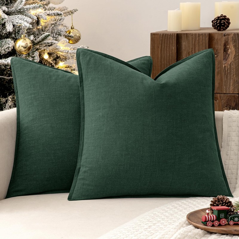 MIULEE Linen Pillow Covers 24x24 Inch Christmas Dark Green Decorative Throw Pillow Covers Pack of 2 Soft Accent Farmhouse Couch Pillowcases Modern Home Decors for Sofa Cushion Living Room Bed