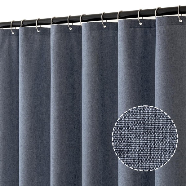 MIULEE Linen Textured Shower Curtain, 120 x 200 cm, Blue, Heavy Hotel Luxury Polyester Waterproof Shower Curtains, Anti-Mould, Washable Fabric Bath Curtain for Bathroom with 8 Rings