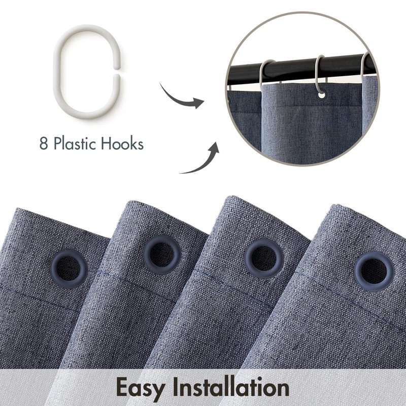 - Material: high quality polyester fabric with linen texture and look, which is wrinkle resistant and does not fade. Besides, the weighted hem increases the weight, it does not keep the shower curtain pulled toward the body, but stays where it should hang.