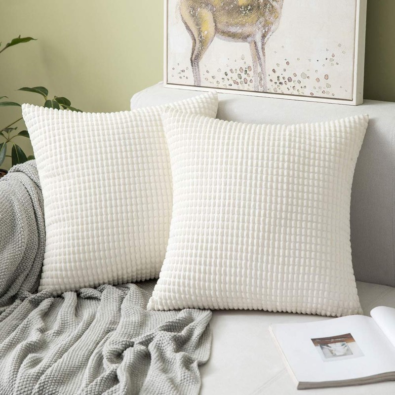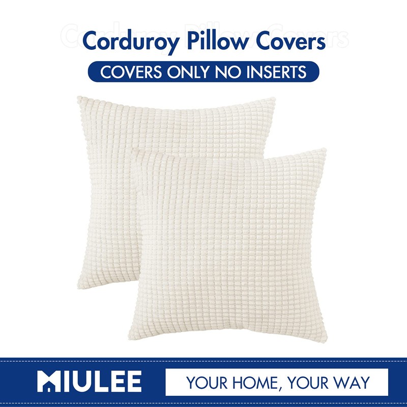 MIULEE Pack of 2, Corduroy Soft Soild Decorative Square Throw Pillow Covers Set Cushion Case for Sofa Bedroom Car 18 x 18 inch 45 x 45 cm Cream White