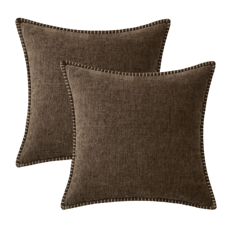 MIULEE Pack of 2 Couch Throw Pillow Covers 18x18 Inch Brown Farmhouse Decorative Pillow Covers with Stitched Edge Soft Chenille Solid Dyed Spring Pillow Covers for Sofa Bed Living Room