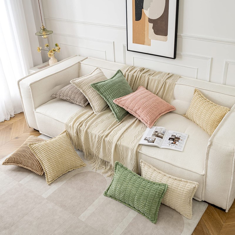 - SOFT MATERIAL:Premium striped corduroy fabric which fearures soft and comfy touch. Unique texture brings you vogue and classic decorative effect. The seam edges are more tight and firm.