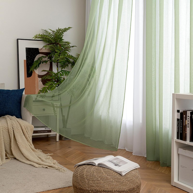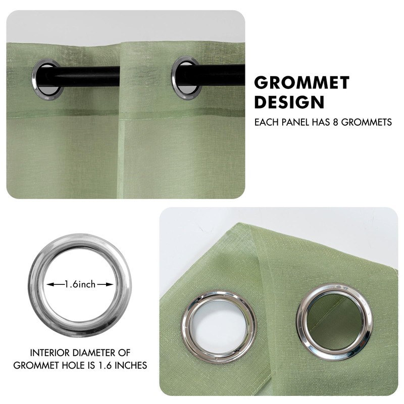 MIULEE Sheer Voile Curtain with Eyelets, Transparent Look, Window Curtain for Bedroom, Living Room, Baby Room, 140 x 175 cm (W x H), Set of 2, Sage Green