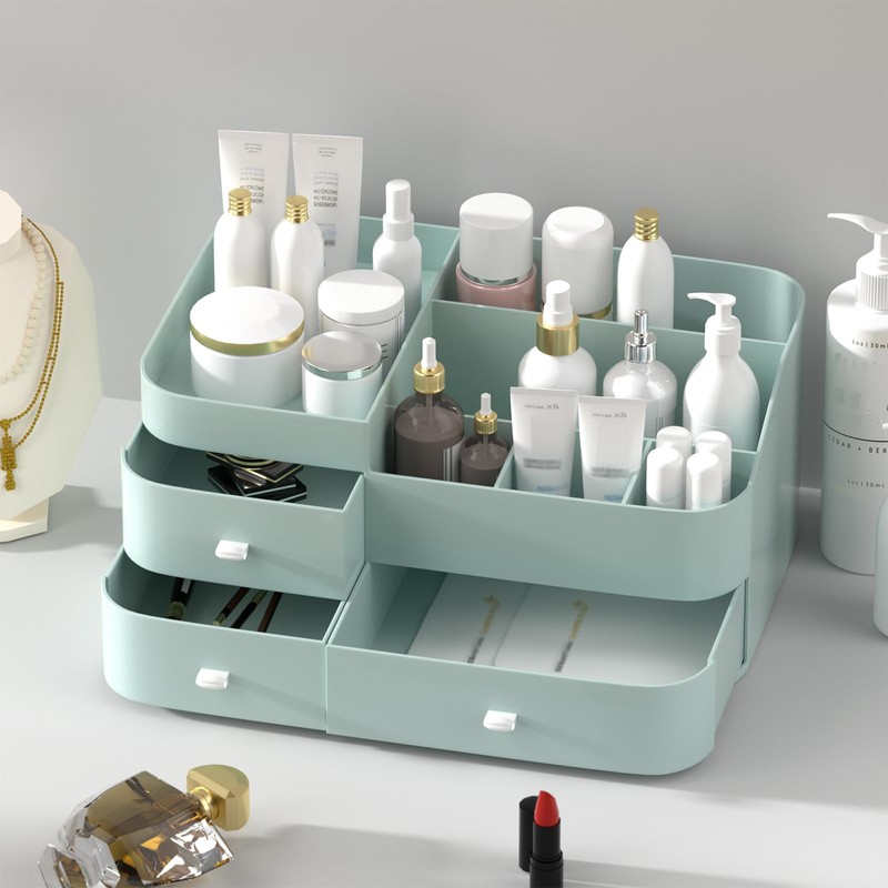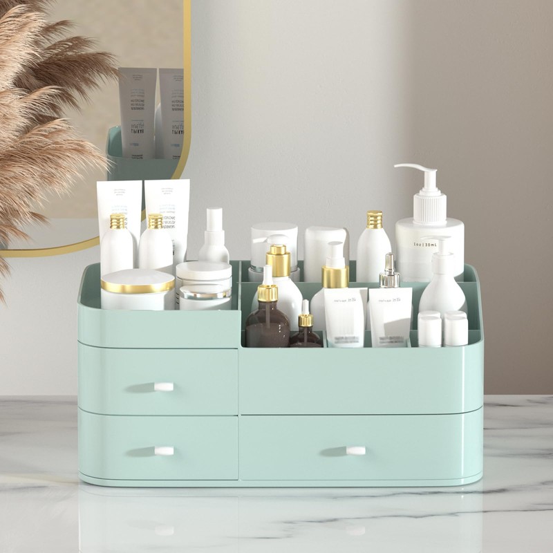 MIUOPUR Makeup Organizer for Vanity, Large Capacity Desk Organizer with Drawers for Cosmetics, Lipsticks, Jewelry, Nail Care, Skincare, Ideal for Bedroom and Bathroom Countertops - Large Green