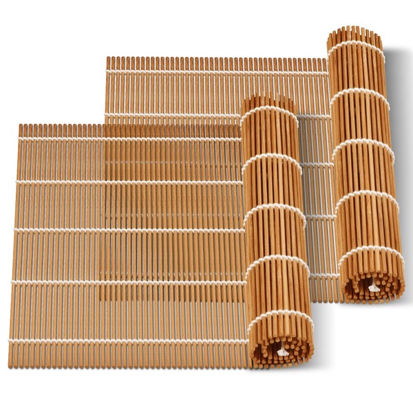 MIUQILAIY 9.5"x9.5"Bamboo Sushi Rolling Mat,kimbap roller(2 PCS)