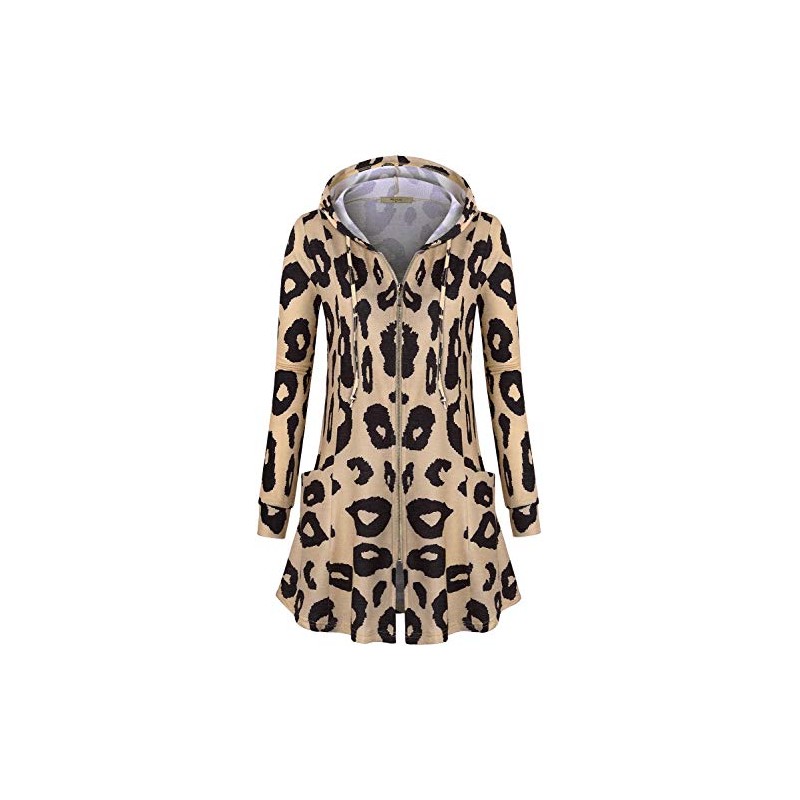 Miusey Leopard Sweatshirt, Misses Unique Long Hoodies with Double Pockets Nice Lightweight Zipper Jacket Pretty Tunics Cool Modern Animal Party Club Bar Disco Wear Leopard S