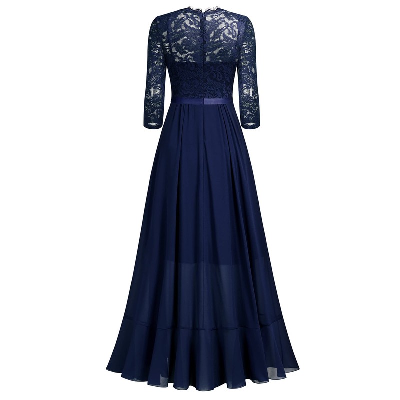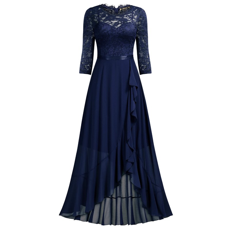 Miusol Women's Elegant Floral Lace Ruffle Bridesmaid Maxi Dress (Medium, Navy Blue)