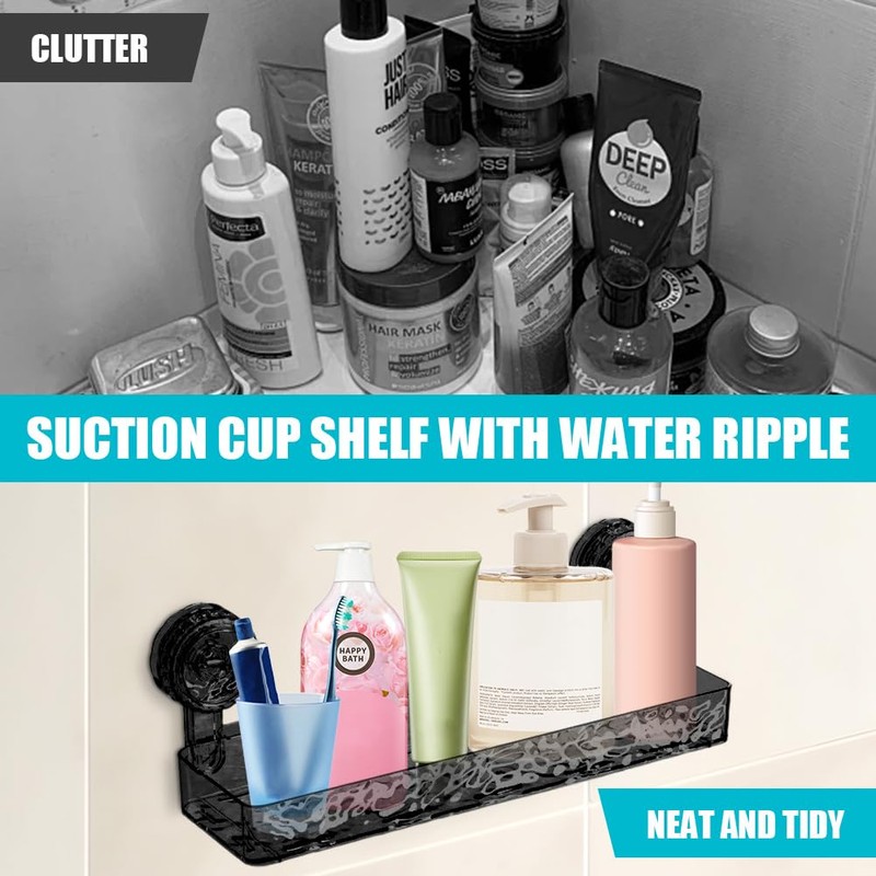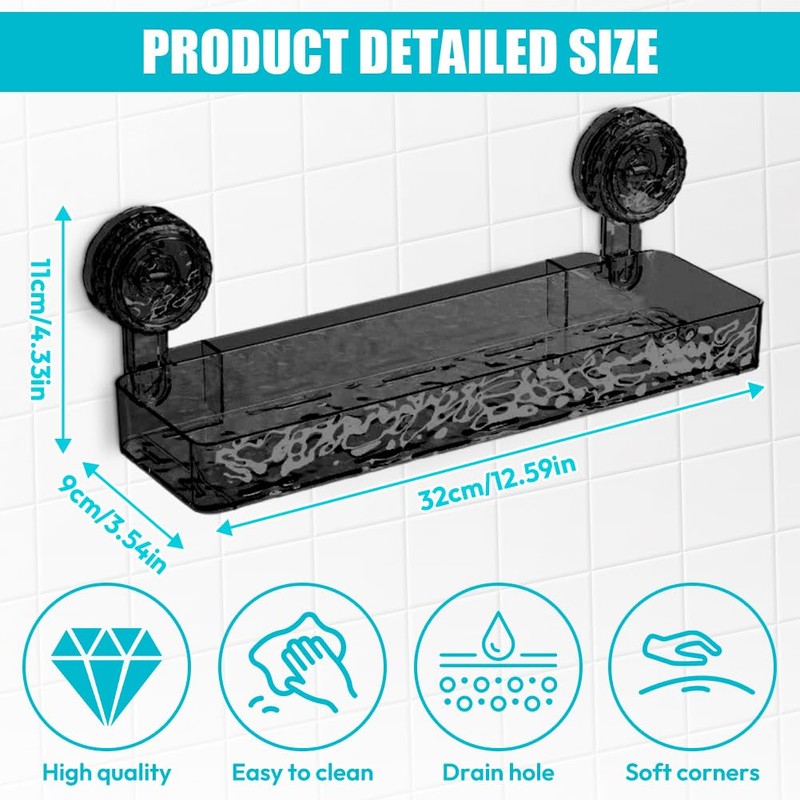 - Strong adsorption: shower shelf adopts improved vacuum suction cup technology, can be firmly attached to smooth surfaces such as tiles, glass or metal without drilling holes. It retains strong adsorption even in humid environments and has a load capacity of up to 3 kg to ensure safety and stability of your belongings.