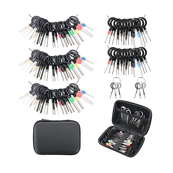 - đăPackage IncludedăThere are 82 pieces of key pins each with different dimension and shape to cater for majority of the car plug terminals. This pin removal tool kit includes 28Pcs single pin extractor, 30Pcs double pin extractor, 24Pcs casing tool and a protective bag.