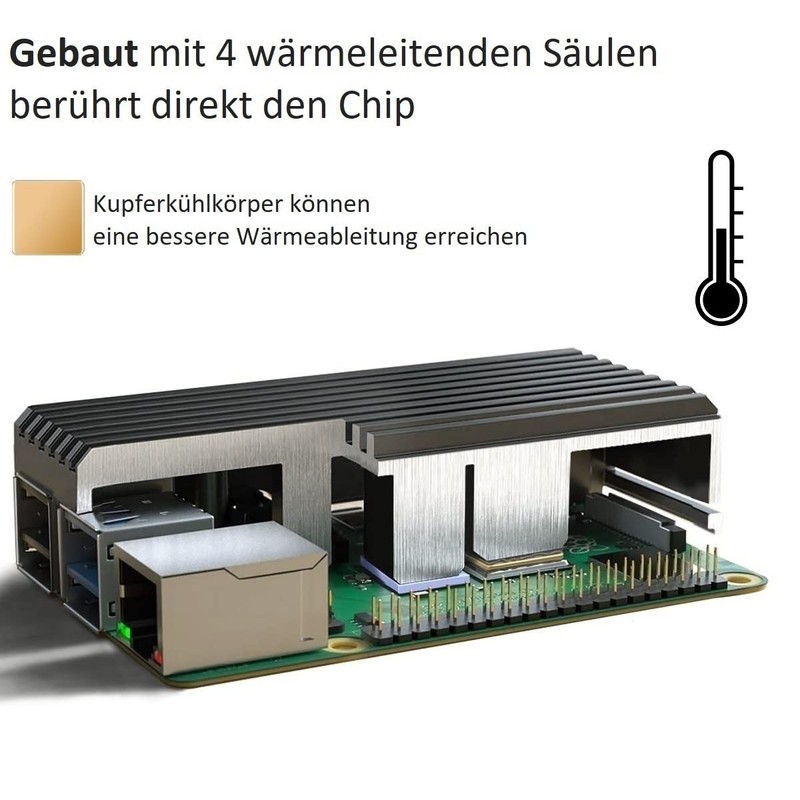 Raspberry Pi 4 aluminium housing with power supply/heat sink/heat dissipation copper sheet