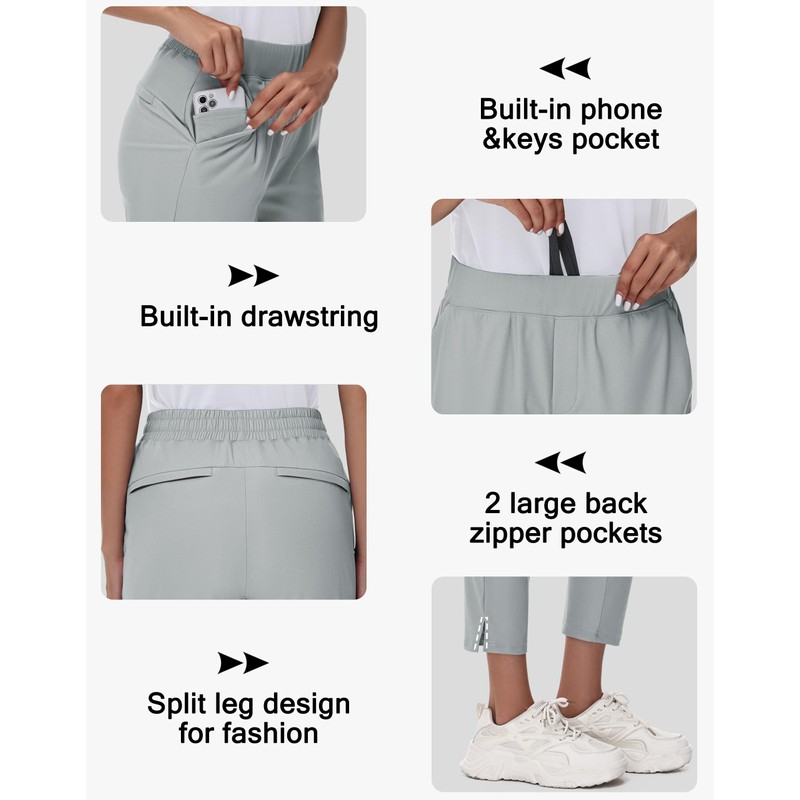 MIVEI Women's Golf Pants Stretch with Zipper Pockets 7/8 Ankle Petite Slacks for Travel Casual Athletic Yoga Work Business Light Grey