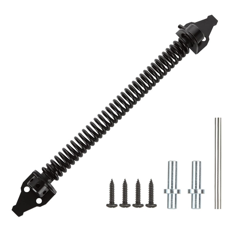 - What You'll Get: You'll get 1pc 14" Black gate spring closer, 2 Locating Pins (0.86" L) and 1 Adjusting Pin (2.08" L) and 4 Screws (1.14" H) Mounting Accessories.