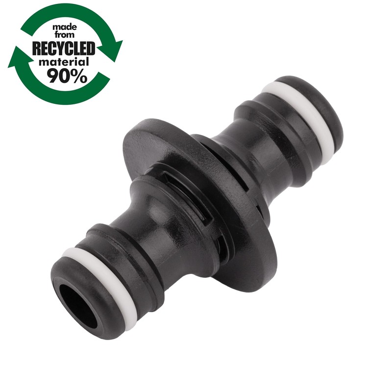 - Box contents: 2 x environmentally friendly coupling connectors for all standard water hoses with mounted quick couplings. Length: 55 mm. Width: 35 mm. Height: 35 mm. Weight: 10 g. Material: made from 90% recycled plastic. Colour: black