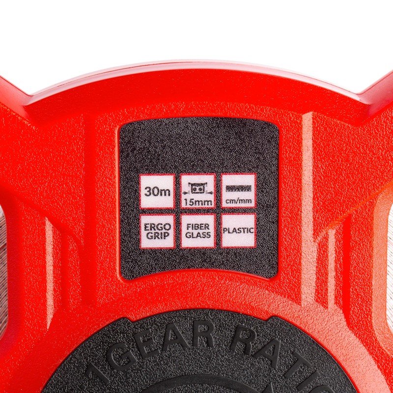 MIVOS Open Tape Measure 30 m x 15 mm - Tape Measure Made of Fibreglass - Scale - Quick Tape Retraction - ABS Plastic Housing - Ergonomic & Non-Slip Tape Measure
