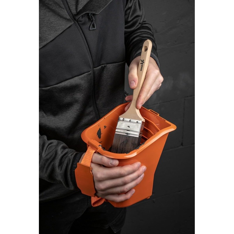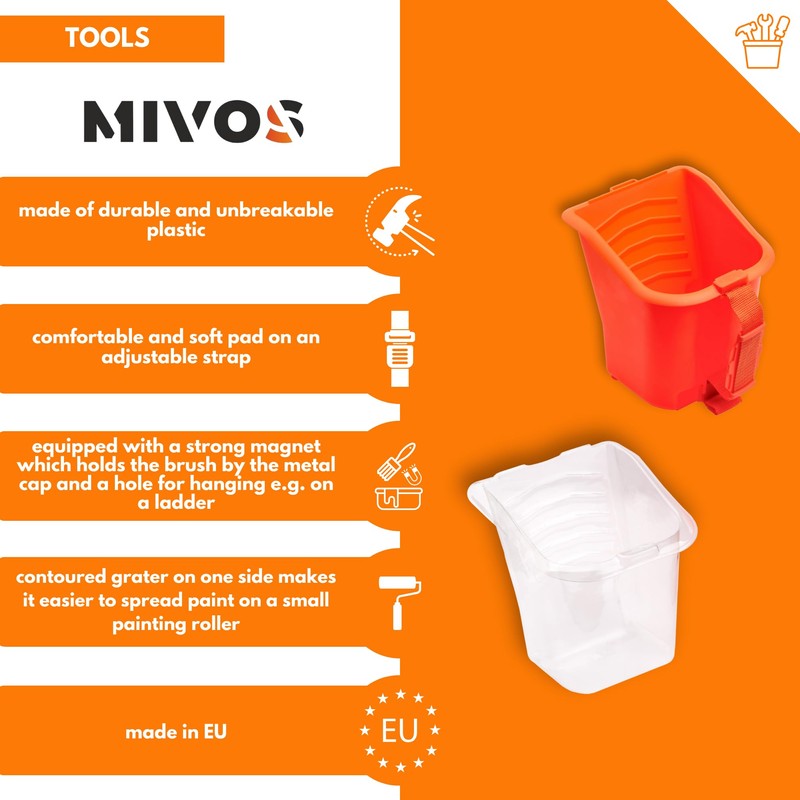 MIVOS Paint Bucket with 5 Inserts, 1 Litre Colour Cup, Adjustable Handle, Plastic Bucket, Construction Bucket with Special Grooves, Orange, Robust Plastic, Made in the EU