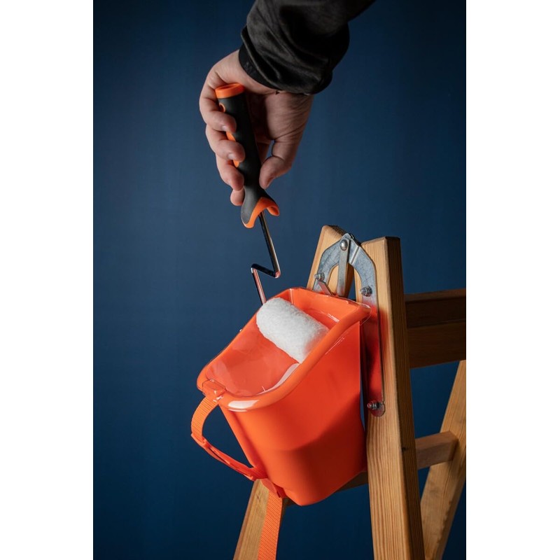 - LARGE CAPACITY & EASY ACCESS The cup holds up to 1.5 litres of paint, so you can pour out a paint can with up to 1 litre capacity in one go. A special eyelet allows the cup to be hung on a painting ladder, so you always have it at hand. Plus, a strong magnet holds the brush firmly to its metal cap, and a contoured grid on a wall makes it easy to evenly distribute paint on a small roller.