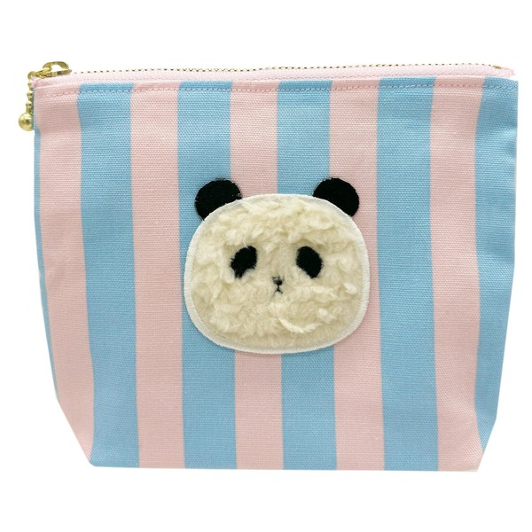 Miwaki Porch-w Women's Makeup Pouch, Small Item, Vertical, Simple, Patch Motif, Cat Panda, striped light blue/pink x panda