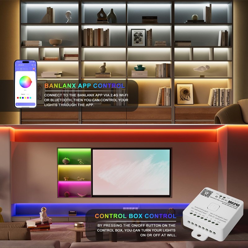 - 【Third Party Voice Control】Integrated with smart speaker platforms like Alexa, Google Home, enabling voice commands for light switches, brightness, and color control. Search and add "BanlanX" on Alexa/Google Home, then you can control your lights with your voice!