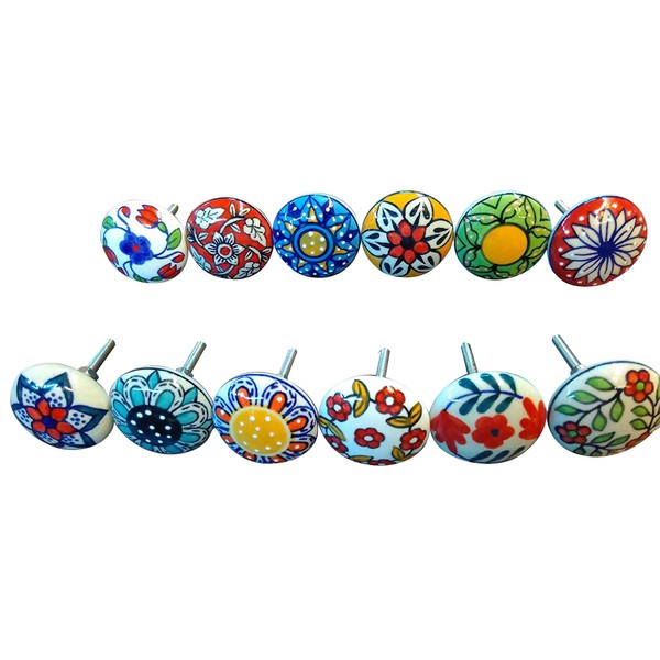 - Mix of Vintage Ceramic Knobs Pack of 12 Flower Design Handles for Door Cupboard Drawer