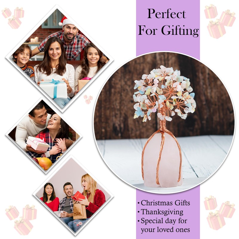 - ✨ MIX OPAL GEMSTONE TREE: This Feng Shui Rose Quartz Gemstone Tree with Natural Rose Quartz Stone Base, Total Size for crystal tree is approximately 5.5"- 6.5", Weight range from 350-400 grams, Size for the Natural Stone base is approximately 2-2.5", Copper Wire. The Tree symbolizes stability, growth, as well as a long life blessed with abundance, It will help you to attract all good things.