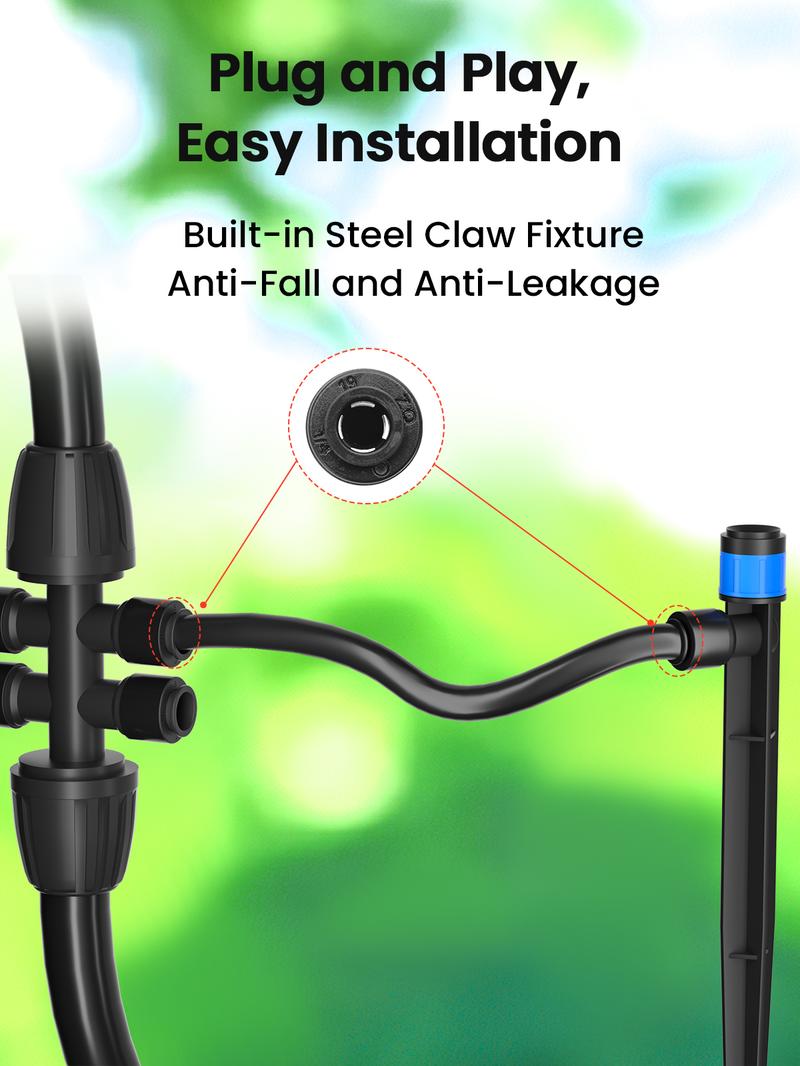 Hassle-free Installation: Goodbye to complex assembly! Our MIXC micro drip irrigation kit features straightforward tubing and connector connections, eliminating the need for hot water or other heating methods. Plus, it comes with easy-to-follow instructions for a seamless setup.