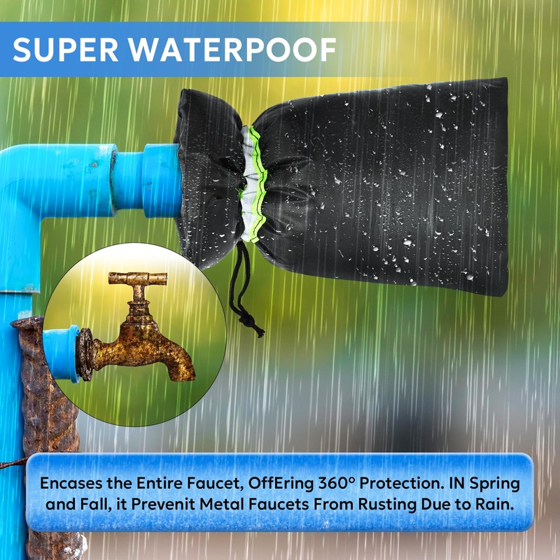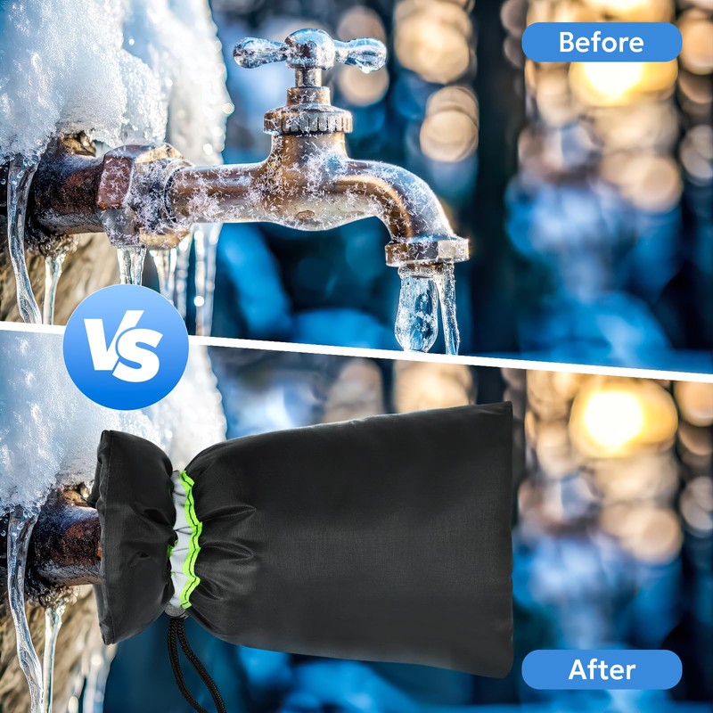 - Prevent Costly Repairs: Our outdoor faucet covers for winter provide comprehensive protection by securely covering the faucet and shielding exposed pipes, extending protection to the wall. This prevents outdoor faucets, spigots, and pipes from freezing and cracking, saving you from expensive repair bills. Act now—our faucet covers for winter are your smart choice for saving both time and money!