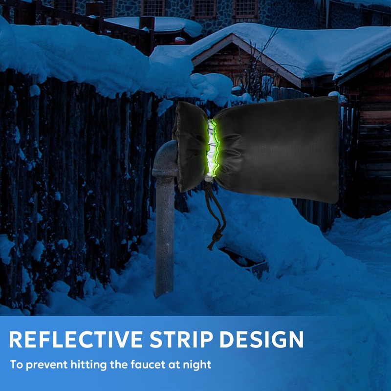 - Upgraded Outdoor Faucet Covers: Each pack includes two thickened and enhanced outdoor faucet covers designed specifically for winter freeze protection. Made from waterproof fabric and filled with high-density cotton, these faucet covers offer superior insulation. The reflective strip design allows for quick installation and easy visibility at night, ensuring you can locate your faucets effortlessly.