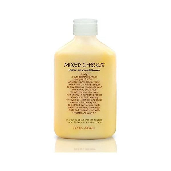 ADIÓS SECO, enredado y rizos rebeldes: beneficiarse de la adición la mejor licencia en el tratamiento a su régimen de cuidado del cabello. Polluelos mixtos acondicionador hidrata y acondiciona sus rizos a la perfección con su formulación y especiales propietarias ingredientes. Da brillo, suavidad y manejabilidad .; Protegerlo de daños a diario: pelo está expuesto continuamente a las condiciones y las sustancias que se seque y lo hacen más susceptibles al daño. Coloración, tratamientos químicos, herramientas de peinado, la exposición al sol, y la baja humedad son algunos de los factores comunes que se abren las cutículas del cabello para dar paso a los daños. Nuestra acondicionador sin enjuague repondrá mientras se protege .; PREMIUM INGREDIENTS: Aceite de Jojoba, anti-bacterianas, anti-inflamatorio, no tóxico y comedogénico, da brillo, las condiciones, promueve el crecimiento del cabello y ayuda a mantener el color. El aceite de onagra con LA y GLA, nutre, fortalece y promueve un cuero cabelludo sano. Aminoácidos de seda con enlace de proteína de seda con la queratina en el cabello para reparar el daño debido a factores ambientales o sobre-procesamiento. Este proceso de unión crea una capa protectora que ayuda a retener la humedad, añadiendo brillo a tu cabello .; AÑADIDO Conditionig: Usando nuestro Leave-in, además de los polluelos mixtos acondicionador diario proporcionará beneficios adicionales y en curso a su cabello y el cuero cabelludo. También mantiene el pelo sellada y sentar las bases para un estilo saludable. Piense en ello como su encrespamiento-héroe, el desenredante de sus sueños, su estilo príncipe de brillante armadura con los beneficios añadidos de cabello hinchable, sana .; PROTEJA SU GARANTÍA: Mixed Chicks productos vienen con una garantía limitada del fabricante cuando se adquiere a través de un distribuidor autorizado. Todos nuestros productos son de Estados Unidos SKU 8031821094
