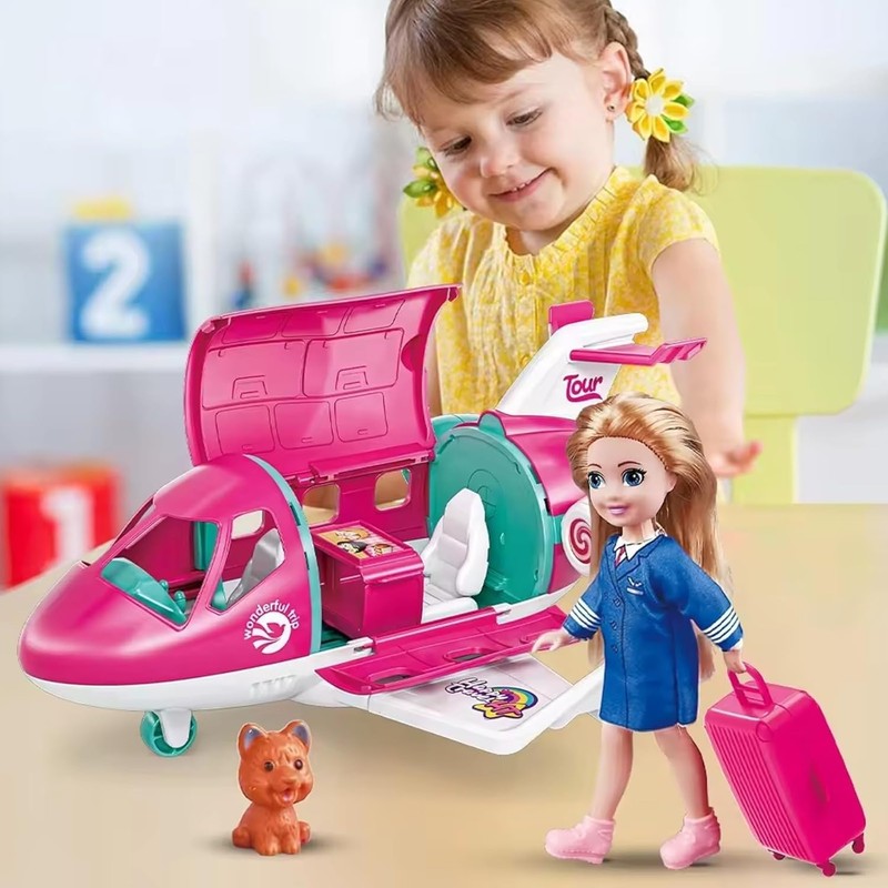 - COMPLETE PRETEND PLAY SET FOR CREATIVE EXPLORATION: This toy set includes an airplane and a fashion doll, offering a complete pretend play experience. Kids can imagine themselves as pilots, flight attendants, or travellers, engaging in endless role-playing scenarios. The inclusion of a fashion doll adds an extra layer of creativity, allowing children to act out fun adventures, build stories, and explore different roles while having hours of imaginative play.