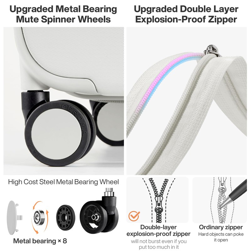 - 【Fine Grid Is Upgrade Version】Upgrade 1: Mute spinner wheels of the suitcases are upgraded to METAL Bearing mute Spinner wheels, which is more solid, durable and labor saving.