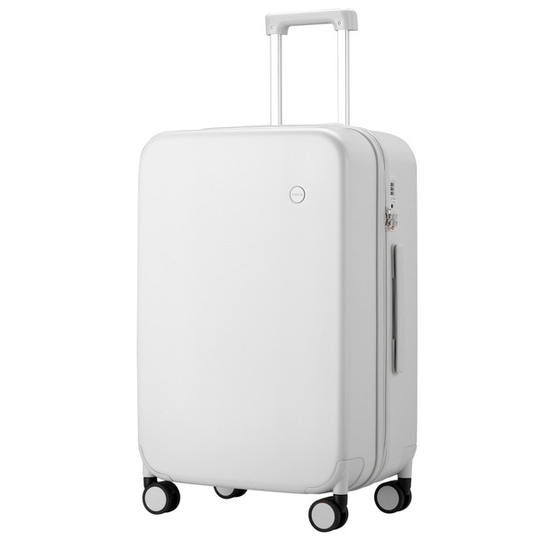 mixi Upgrade Luggage Suitcases with Spinner Wheels, Hardside Rolling Suitcase PC with TSA Lock Travel Case 24in Checked in, Fine Grid Smoke White