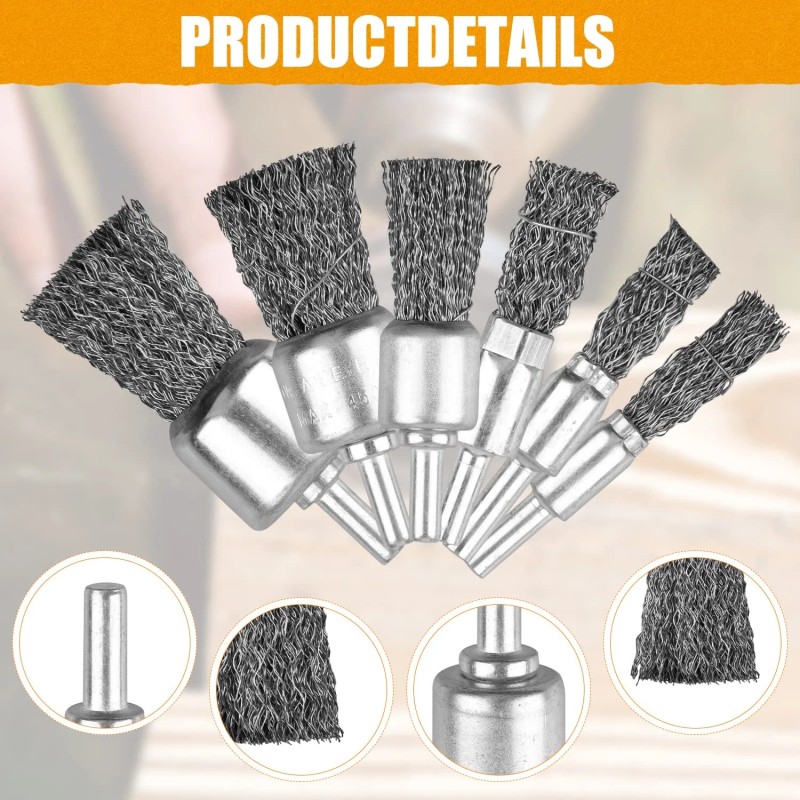 Avoid Breaks And Deformations-These tough wire brush are well-filled with crimped, untempered carbon steel wire. The diameter of the steel wire is reduced from 0.0118in(0.3mm) to 0.012in(0.27mm), which increases the strength of the steel wire. It has reasonable bending design of the curve and also increase the number and thickness of the bristles(1-1.5times) to ensure that the wire will not quickly fall off during the operation of the brush wheel in the shortest time and works more smoothly .