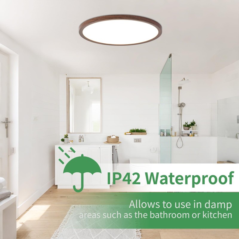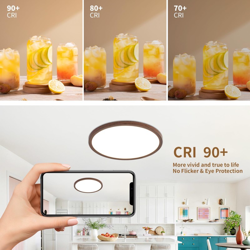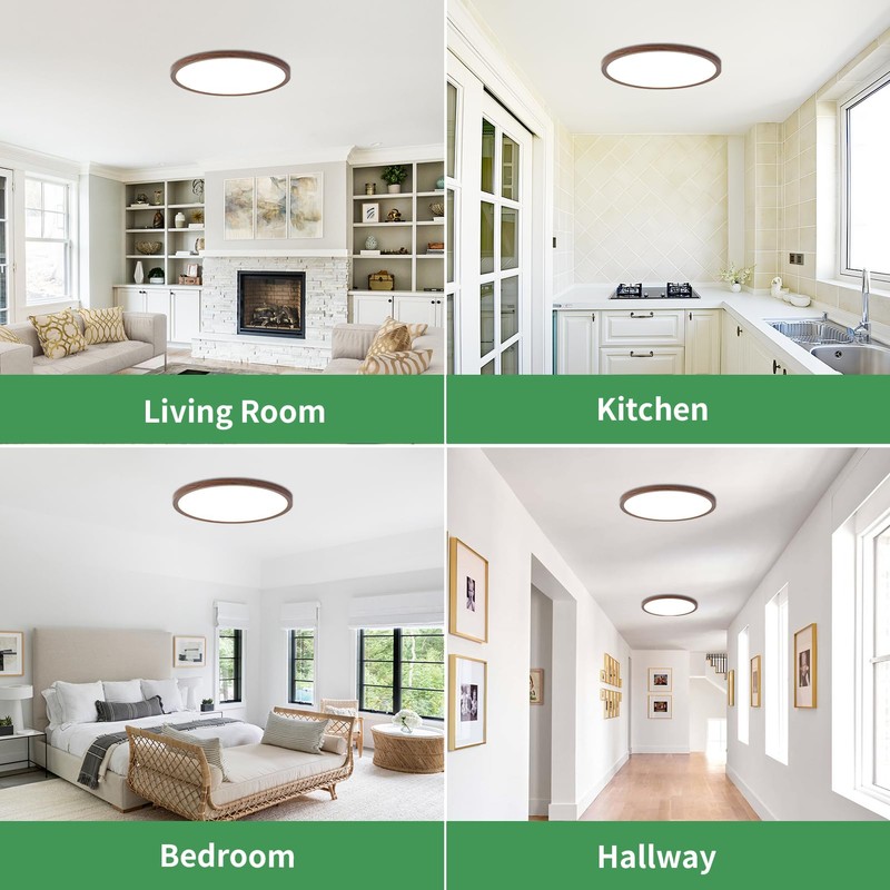 - Sleek and Modern Design: The ultra-thin (0.66inch in thickness) round flush mount design with wood grain (walnut, natural wood and white grain) blends effortlessly into any decor style. A perfect lighting upgrade for modern homes or commercial spaces.
