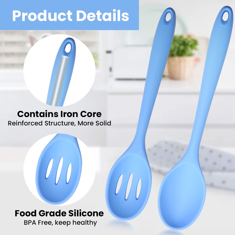 Mixing Spoons, Silicone Slotted Spoon, Silicone Spoons for Cooking, Serving Spoons for Mixing, Serving, Draining, Stirring, Dishwasher Safe, Heat-Resistant, Non Stick (Blue)