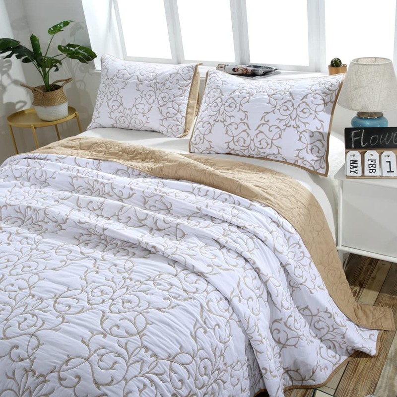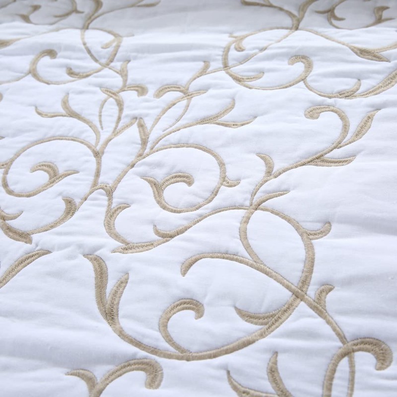 mixinni 2-Piece King Size Soft Microfiber Beige Quilted Embroidery Floral Pattern Pillow Shams-20" x 36"