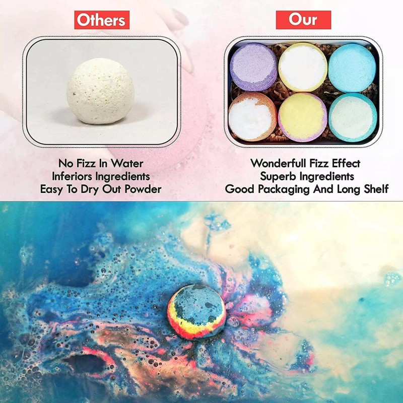 ·❤️Intoxicating and entertaining - 6 delicately handcrafted bath bombs withlong-lasting fragrance provide a unique multilayered explosion of colors andaroma. Our handcrafted bath bombs are filled with essential oils (Lavender,Peppermint, Orange, and others) to provide a peaceful and fragrant aromatherapyexperience in the comfort of your own home