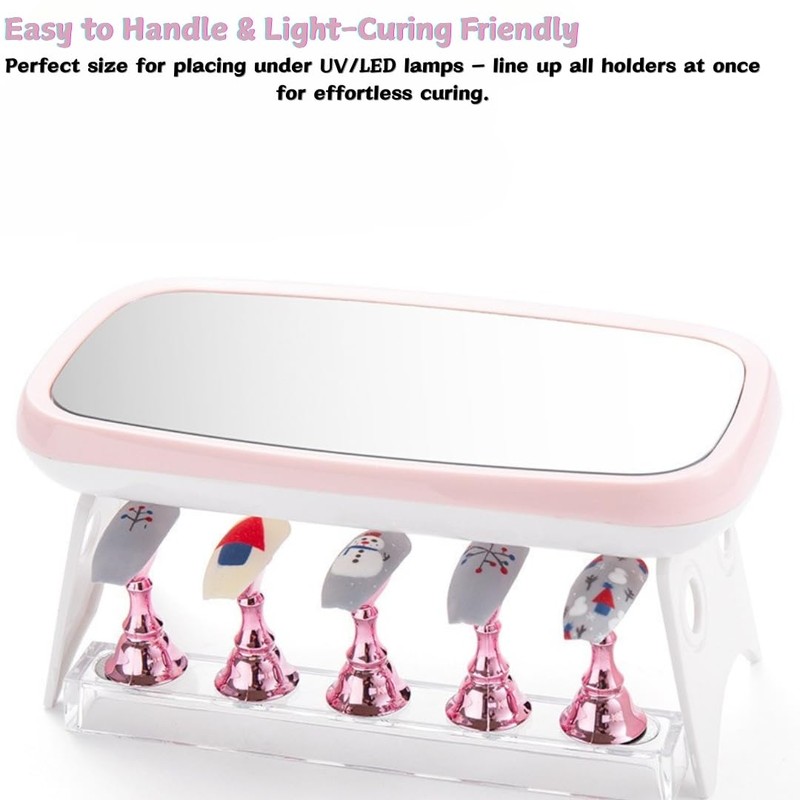 - 🎁 Compact & Portable – Comes with 5 individual holders + 1 base, perfect for home, travel, nail salons, or as a gift for nail enthusiasts.