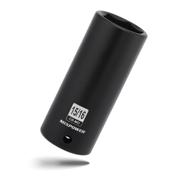 MIXPOWER 1/2" Drive Deep Impact Socket, CR-MO, 15/16", 6 Point, Radius Corner Design, Axle Nut Impact Grade Socket for Easy Removal
