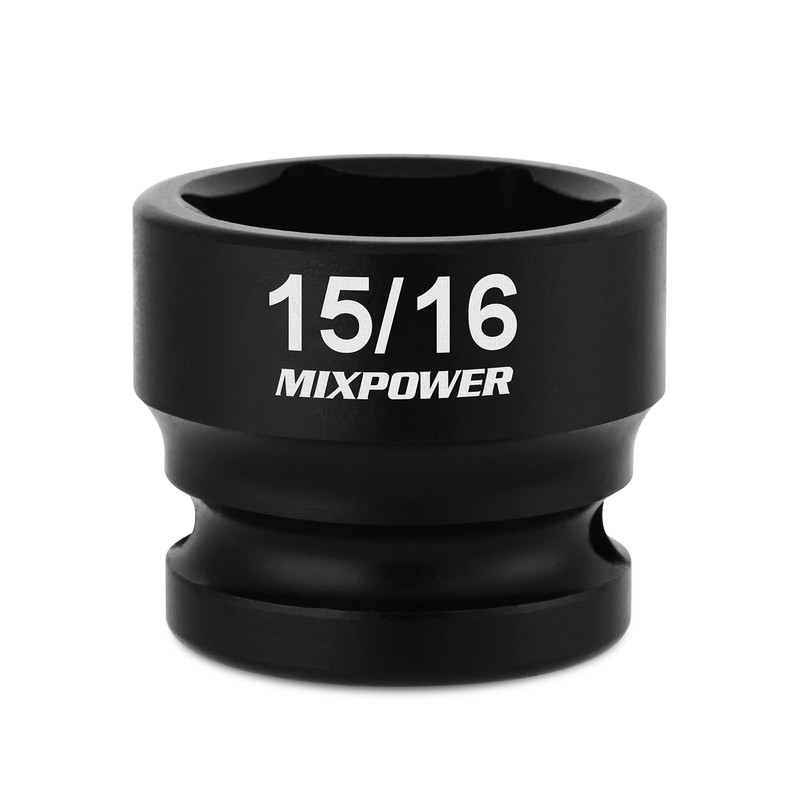 MIXPOWER 1/2" Drive Stubby Impact Socket,CR-MO,15/16",6-Point,SAE,Radius Corner Design, Axle Nut Impact Grade Socket for Easy Removal