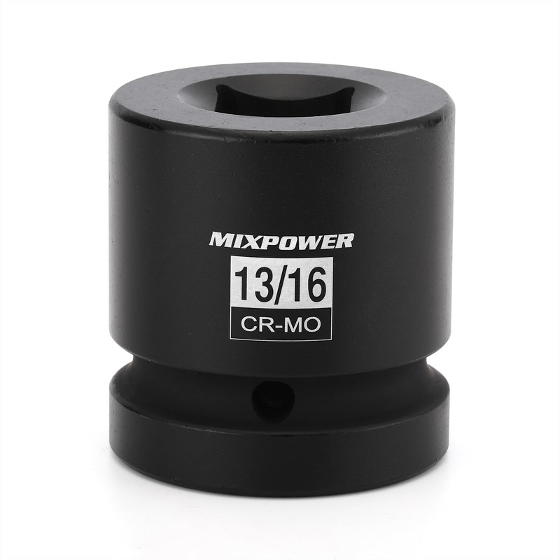 MIXPOWER 1"Drive 13/16" Square Socket, CR-MO, 4-Point, SAE, Black Phosphate Finish