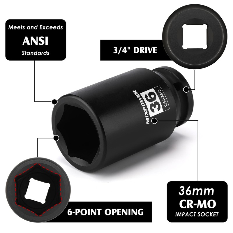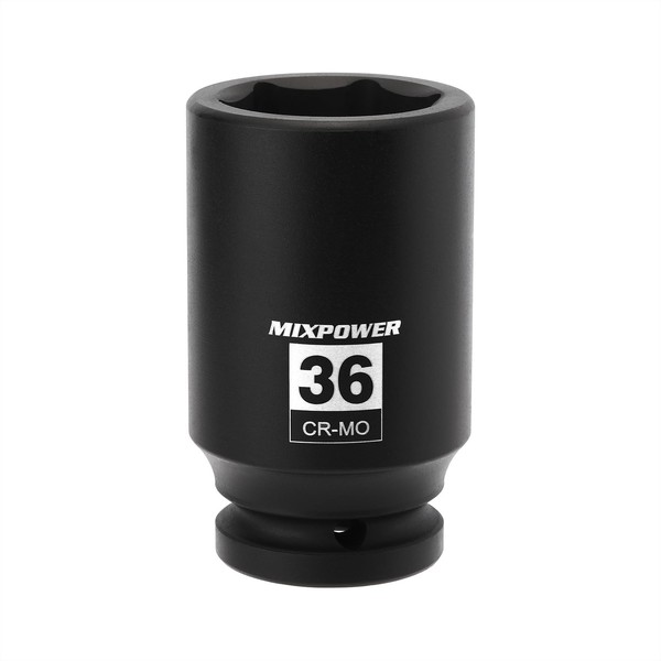 MIXPOWER 3/4" Drive Deep Impact Socket, 36mm, CR-MO, Metric, 6 Point, Axle Nut Impact Grade Socket for Easy Removal