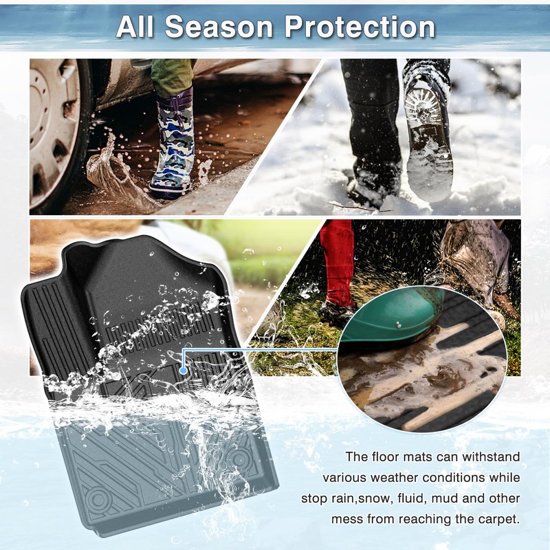 - All Weather and Safe TPE Material: Floor mats are made of TPE materials featuring waterproof, durable, wear-resistant, non-slip and odorless. High tensity and safe TPE material keeps its flexibility in all season while still offering an excellent feel and extreme wear resistance.
