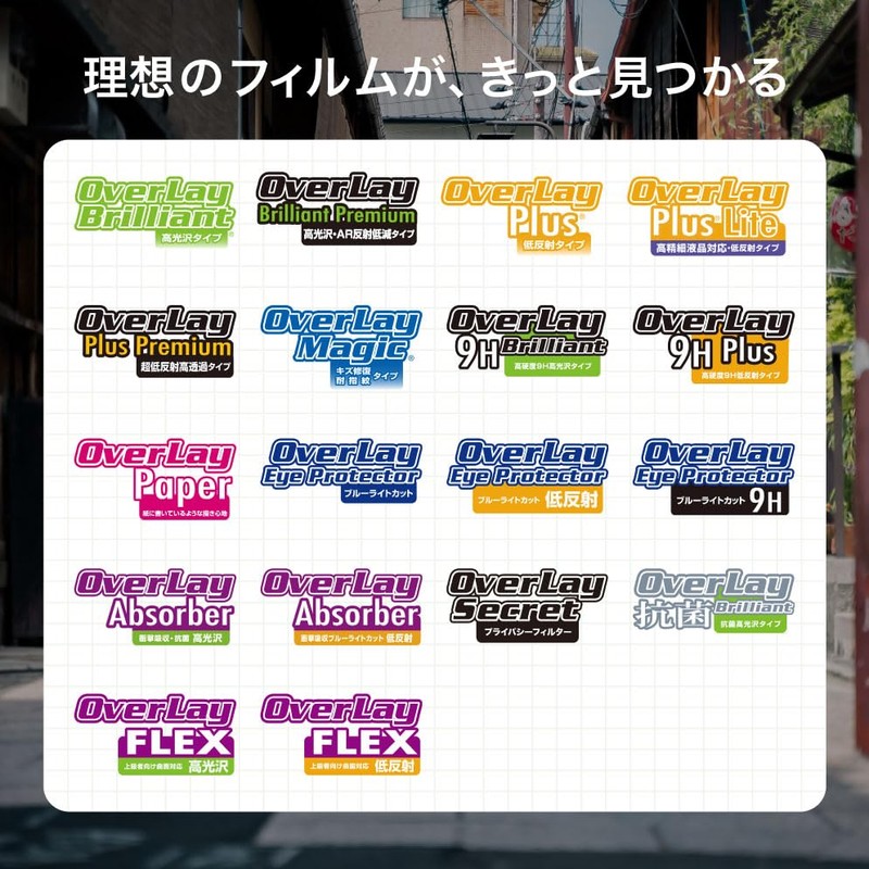 OverLay Brilliant is a liquid crystal protector with a glossy surface treatment that protects your screen from scratches and dust, and provides a beautiful gloss and luxurious feel that allows you to reproduce the image with vivid colors. Conventional anti-glare treatment on LCD screens and surfaces diffuses light instead of "reflection" instead of "light reflection", so there is a phenomenon that the color itself becomes white.