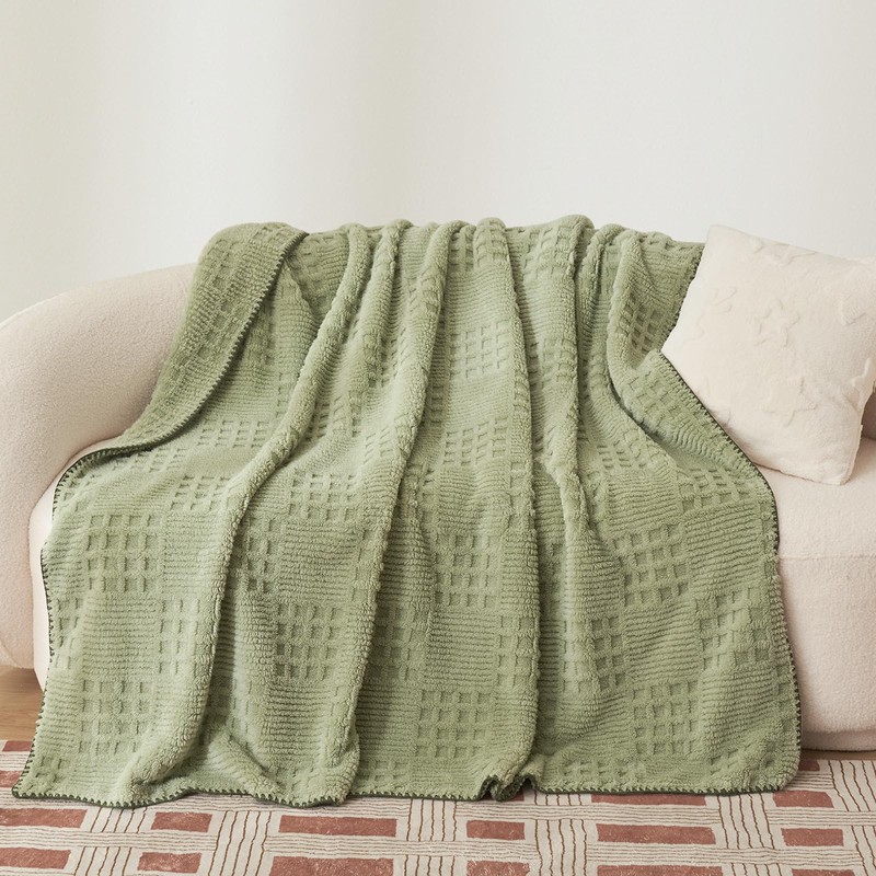 Miyacare Cuddly Blanket, 100 x 150 cm, Couch Blanket, Throw, Soft and Warm Fleece Blanket, Waffle Pattern Blanket, Cosy Cord Blanket, Cuddly Blanket, Fluffy (Grass Green, W 100 x L150 cm)
