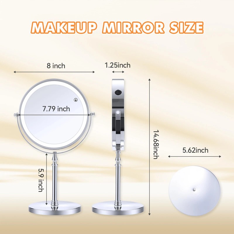 【360 DEGREE ROTATION】This 20x makeup mirror Features a 360-degree swivel design, you can adjust the angle of the mirror at any time without having to adjust your body to fit the mirror, making the user experience further enhanced.