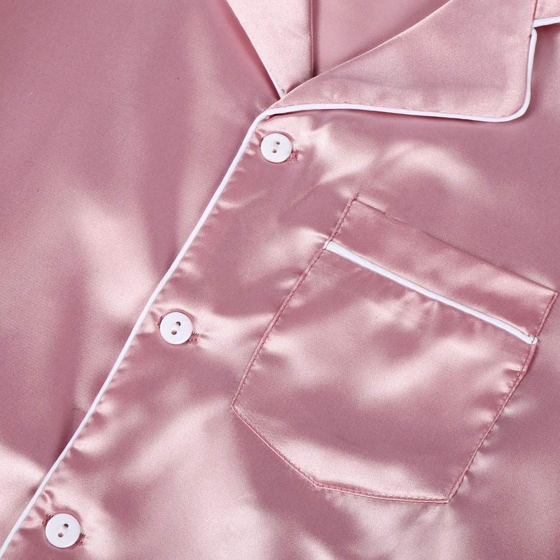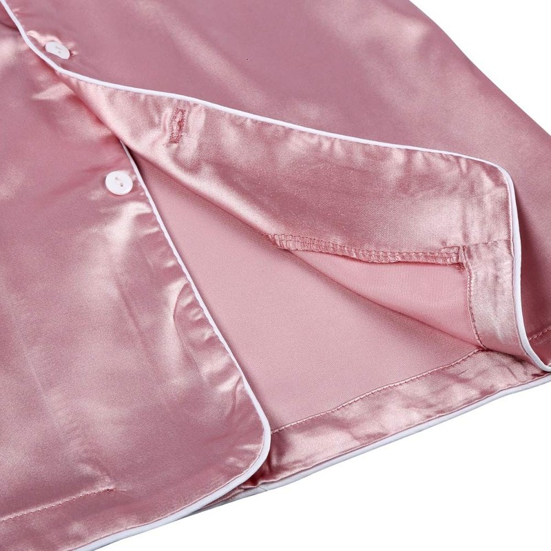 Miyanuby Girls Boys Pyjamas Set Button-up Silk Satin Pajamas Sleepwear Nightwear 2 Pieces Clothes Set Gifts for Baby Girls Boys