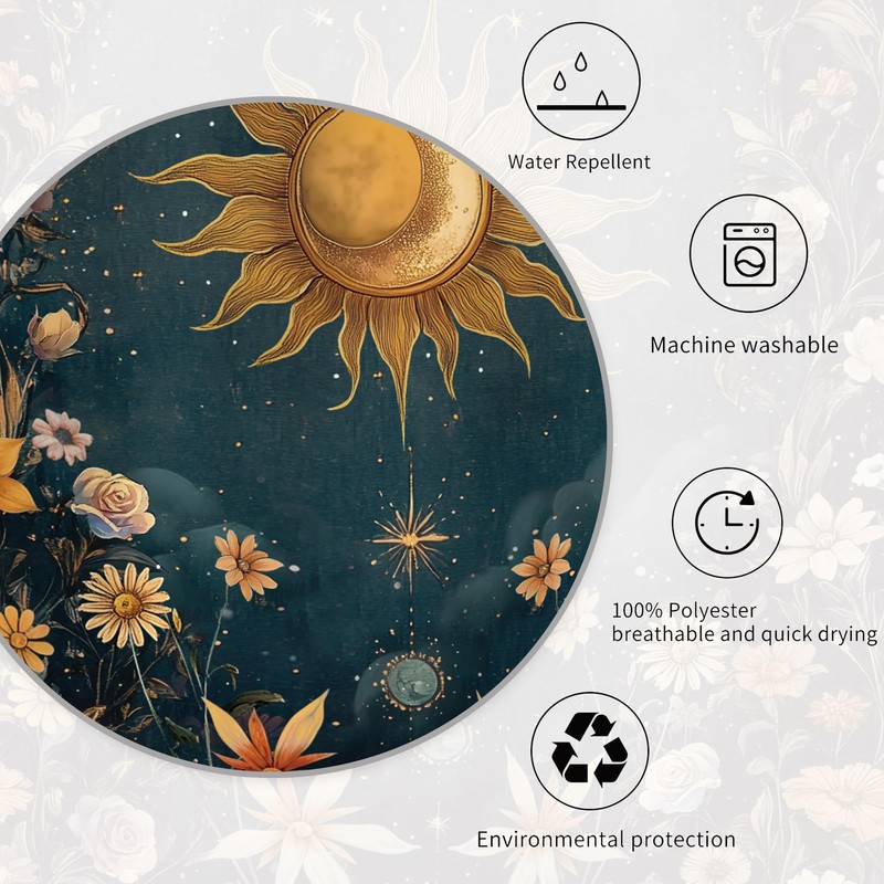 Miyotaa Celestial Sun Moon Shower Curtain Set 60Wx71H Inches Vintage Night Aesthetic Mysterious Witchy Polyester Waterproof Cloth Bathroom Curtain with 12 Hooks
