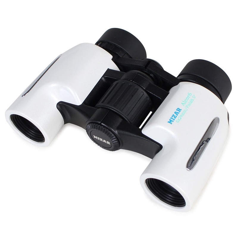 MIZAR Binoculars, 6 Times, 0.9 inches (24 mm), Diameter Porro Prism Type, Standard Pearl White