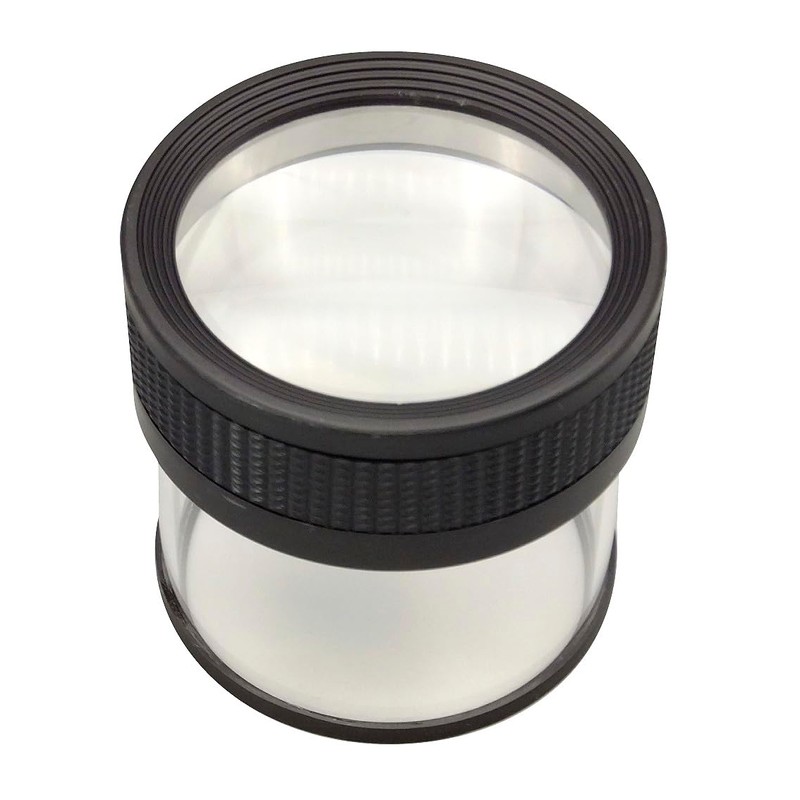 • Magnifying Glass Specifications: Magnification: 5.0x, Lens Diameter: 3.0 inches (75 mm), Material: Acrylic (lens), ABS resin, acrylic resin (body)