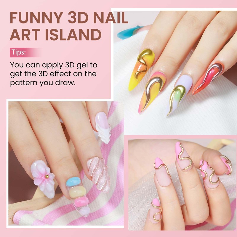 - No More Brushes Needed & Beginner-Friendly: You don't need any other tools or brushes for apply this 3D gel, just squeeze and create the shape directly. And This 3D nail gel allows even beginners to effortlessly create the shapes they want. It is easy to control and can be adjusted before curing, ensuring precise and professional results
